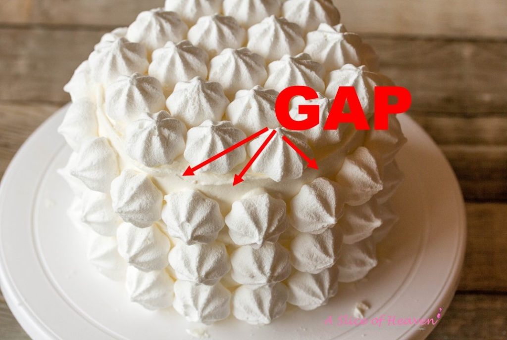 Next, take your meringues and start placing them on the sides of the cake, like this: